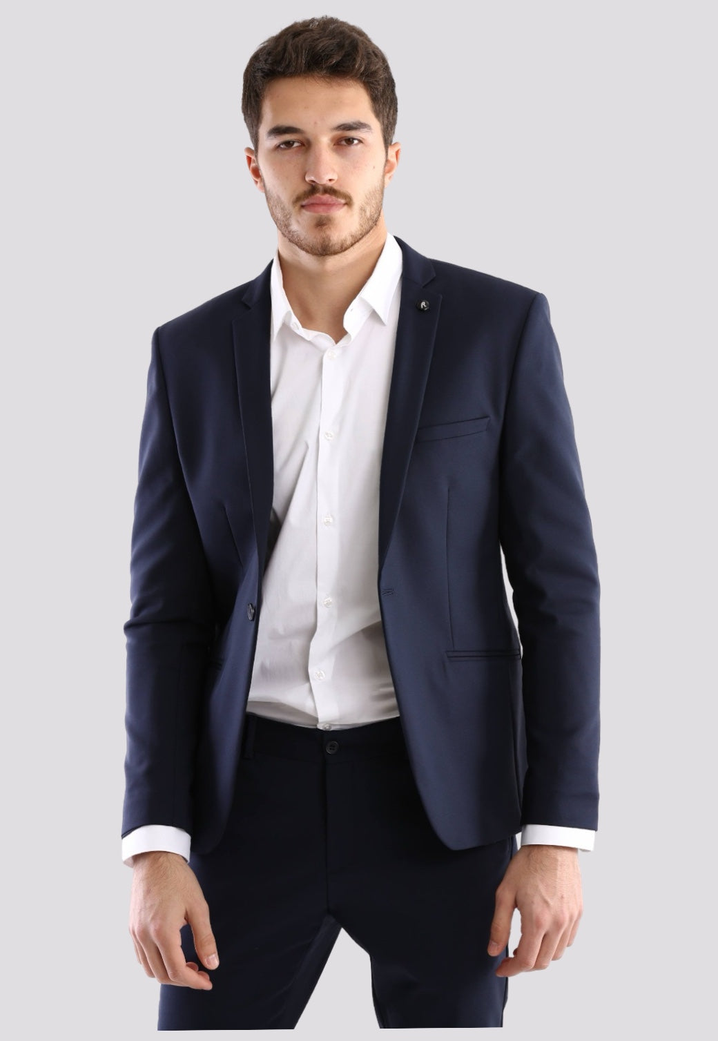 בלייזר מחויט לגברים בגזרה SLIM FIT בצבע כחול