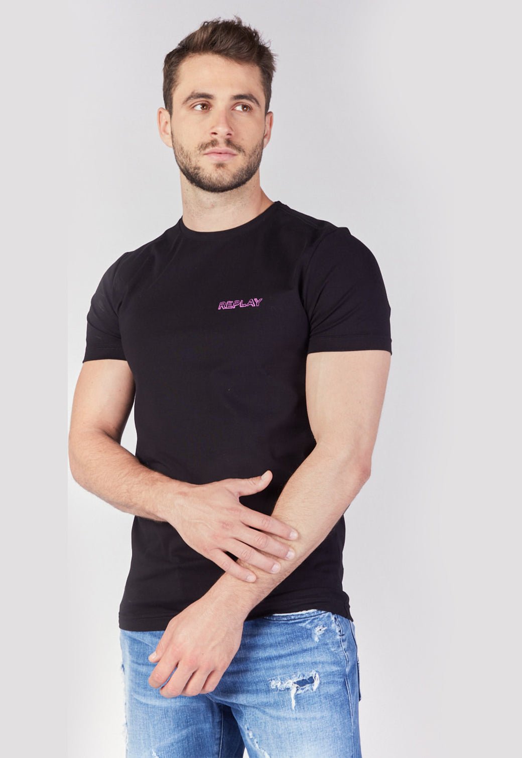 גובה הדוגמן 185 סמ' ולובש מידה L