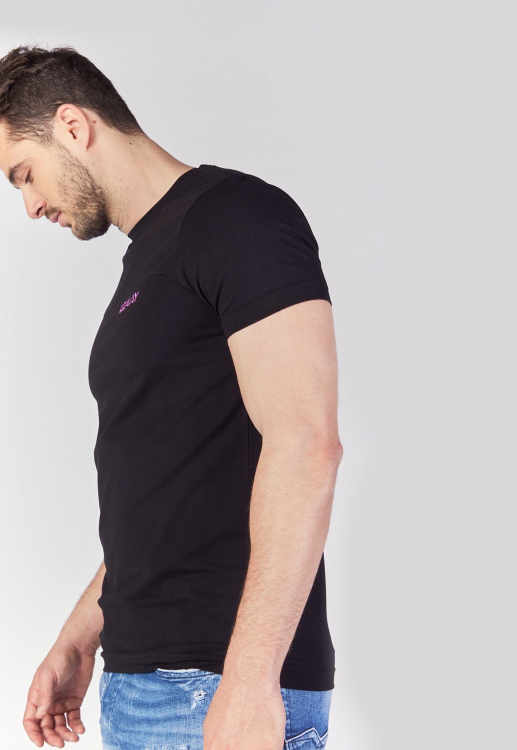 טי שירט קצרה לייקרה בצבע שחור עם הדפס לוגו בחזית גברים