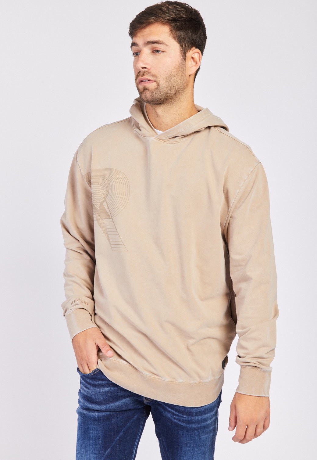 סווטשירט קפוצ'ון מבד דק. לסווטשירט כיסים צידיים והדפס לוגו גרפי בחזית. גברים