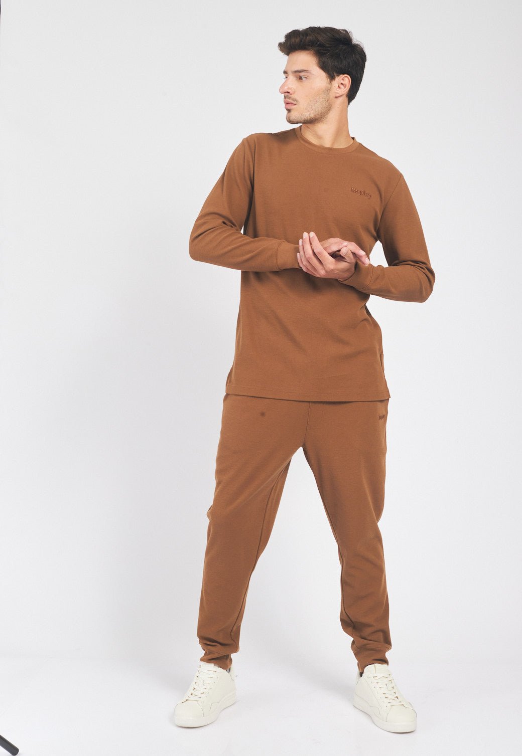 מכנסי טרנינג ארוכים עם כיסים צידיים, כיסים מאחור ולוגו רקום. למכנסיים גומי אלסטי במותן עם שרוך. גברים