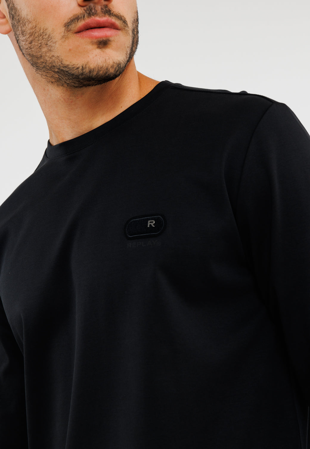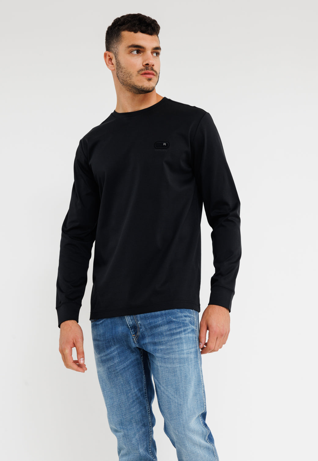 חולצת טי שירט ארוכה לגברים בגוון שחור קלאסי, עשויה מבד מרוסרייזד איכותי לנוחות מלטפת ומראה אלגנטי. מעוטרת בלוגו קטן ומעוצב בחזית, עיצוב נקי המתאים לכל סגנון. מושלמת לשילוב עם ג'ינס או מכנסי קז'ואל ללוק יומיומי מתוחכם.