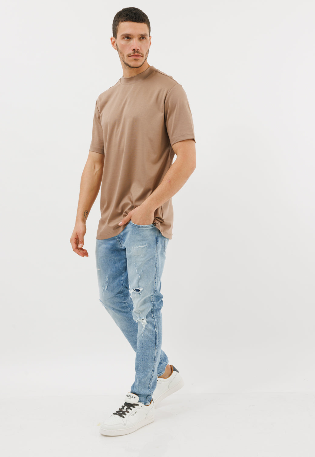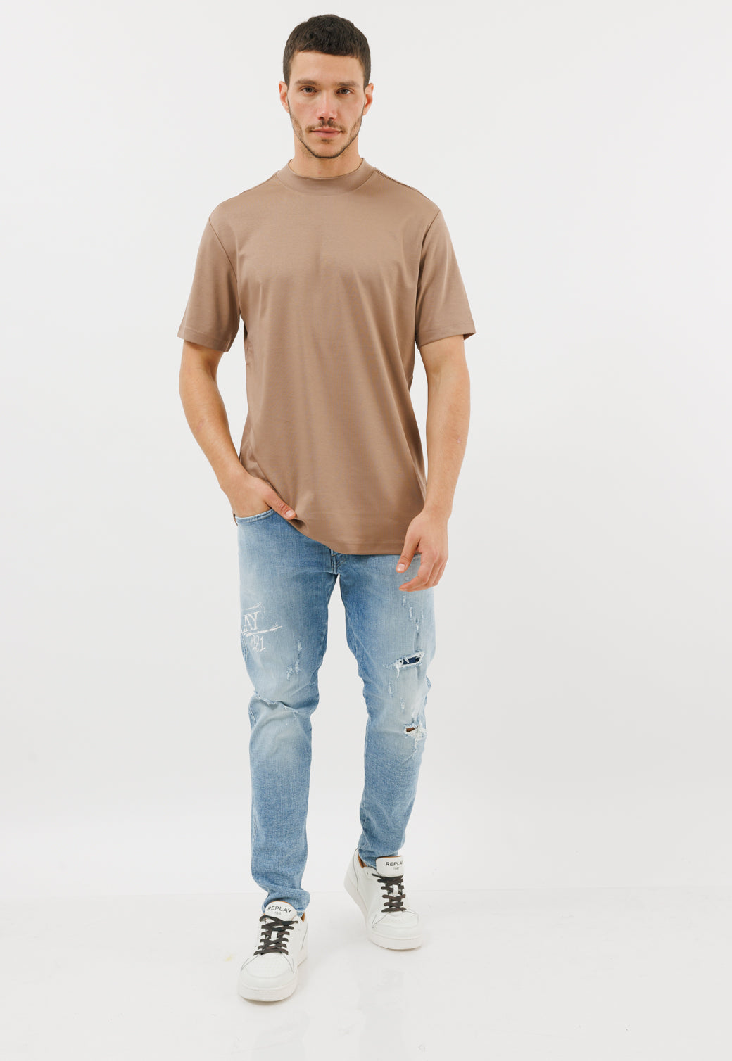 חווית הנוחות במיטבה עם חולצת הטי שירט בגזרה רחבה, בצבע כאמל עדין וחם. עשויה מכותנה איכותית ובעלת תחושה נעימה על העור, חולצה זו מושלמת ללבישה יומיומית או כחלק ממראה מוקפד יותר. מעוצבת בסטייל מינימליסטי עם קווים נקיים למראה עכשווי ואופנתי.
