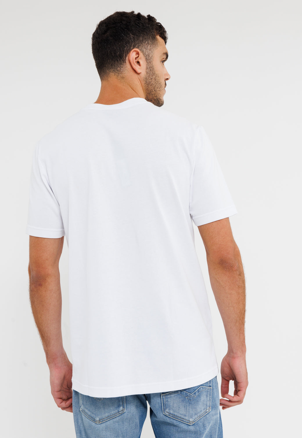חולצת טי אוברסייז מעוצבת לגברים, בצבע לבן נקי. החולצה עשויה מבד כותנה רך ונעים למגע, עם צווארון עגול ושרוולים קצרים. דגם זה מתאפיין במראה מינימליסטי עם תפרים דקים ולוגו דיסקרטי של Replay בחלקו התחתון של החולצה, מוסיף נגיעה אלגנטית ללוק היומיומי.