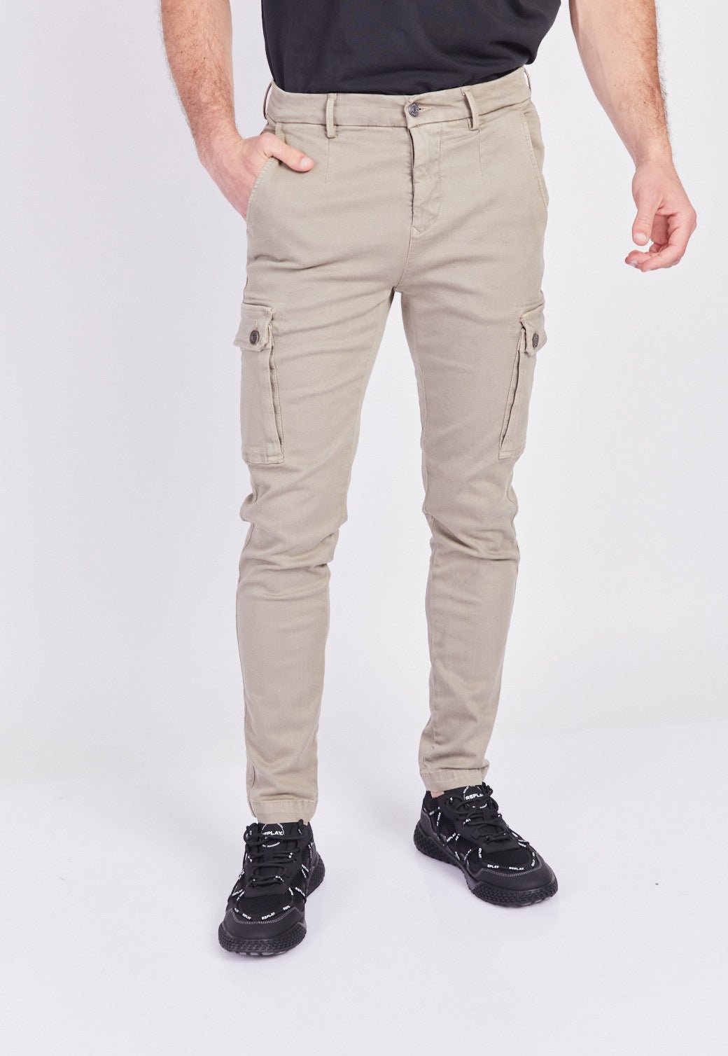 מכנסי קרגו עם כיסים. למכנסיים גזרת Slim ולולאות מותן לחגורה.