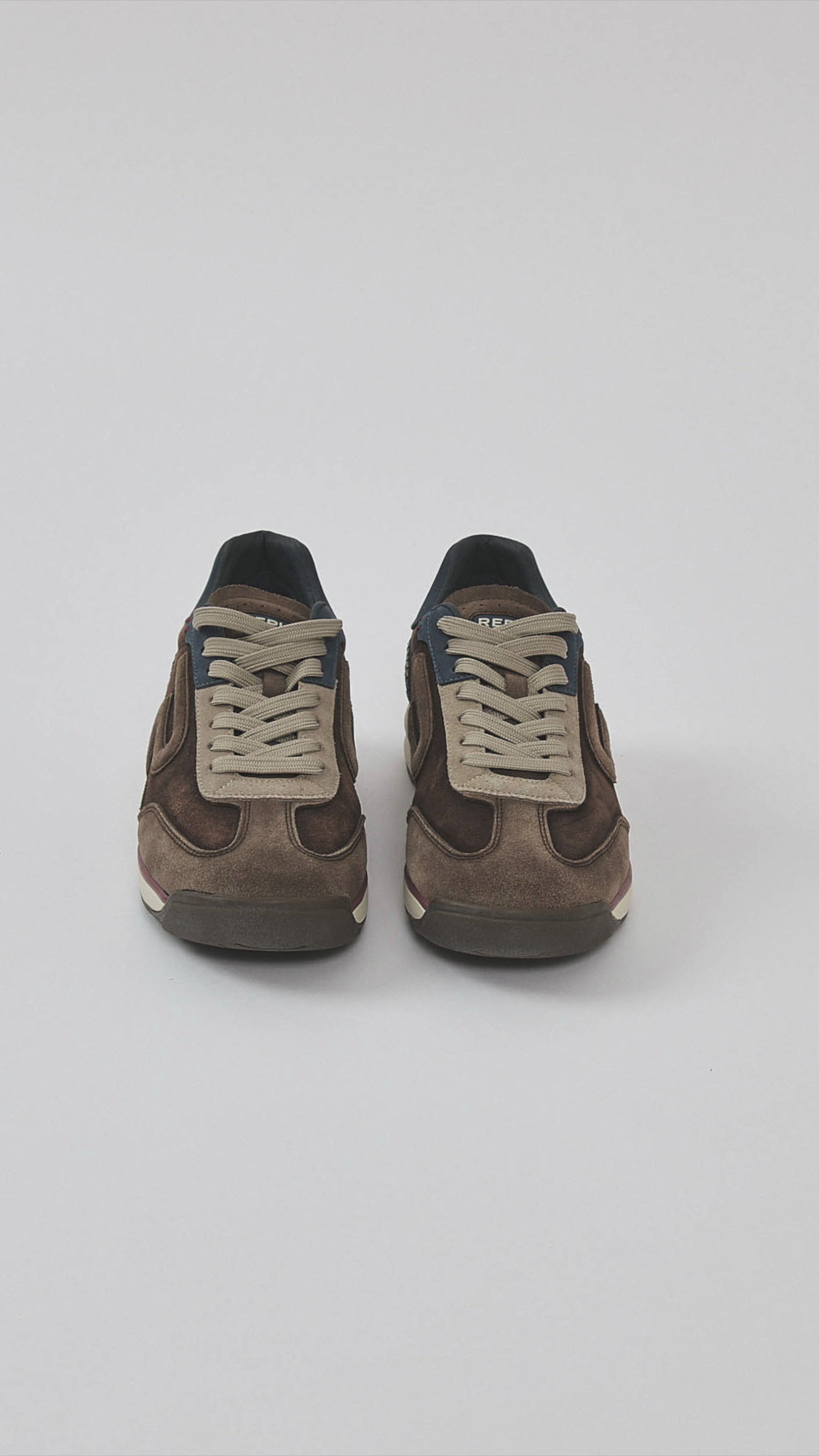סניקרס לגברים מדגם YARD COLLEGE בצבע חום עם שילוב פרטים בכחול ואפור לסטייל מודרני וייחודי.